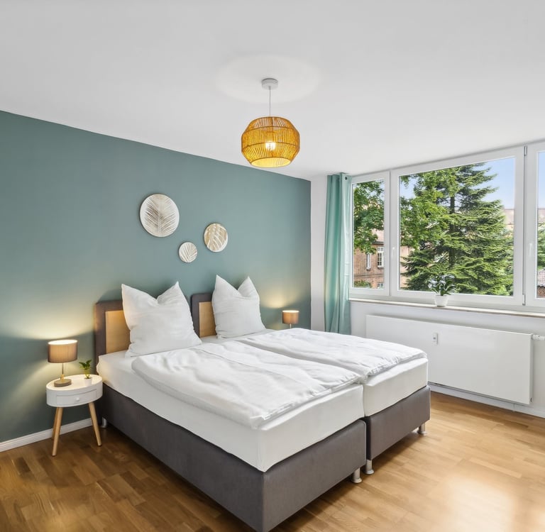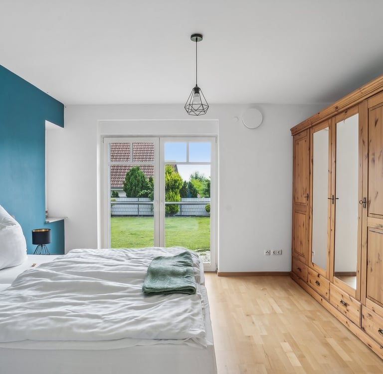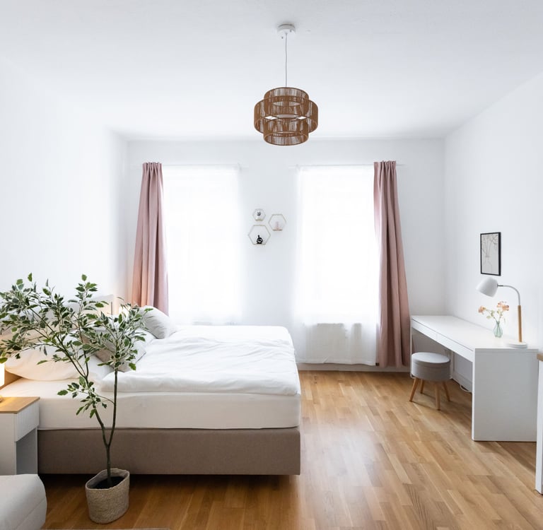 Unsere komfortablen, voll möblierten Apartments bieten alles, was du nach einem langen Arbeitstag brauchen - Qualität, Ruhe und das Gefühl zu Hause angekommen zu sein.