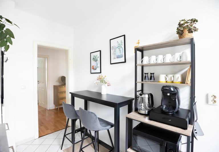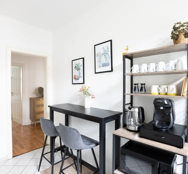 Unsere komfortablen, voll möblierten Apartments bieten alles, was du nach einem langen Arbeitstag brauchen - Qualität, Ruhe und das Gefühl zu Hause angekommen zu sein.