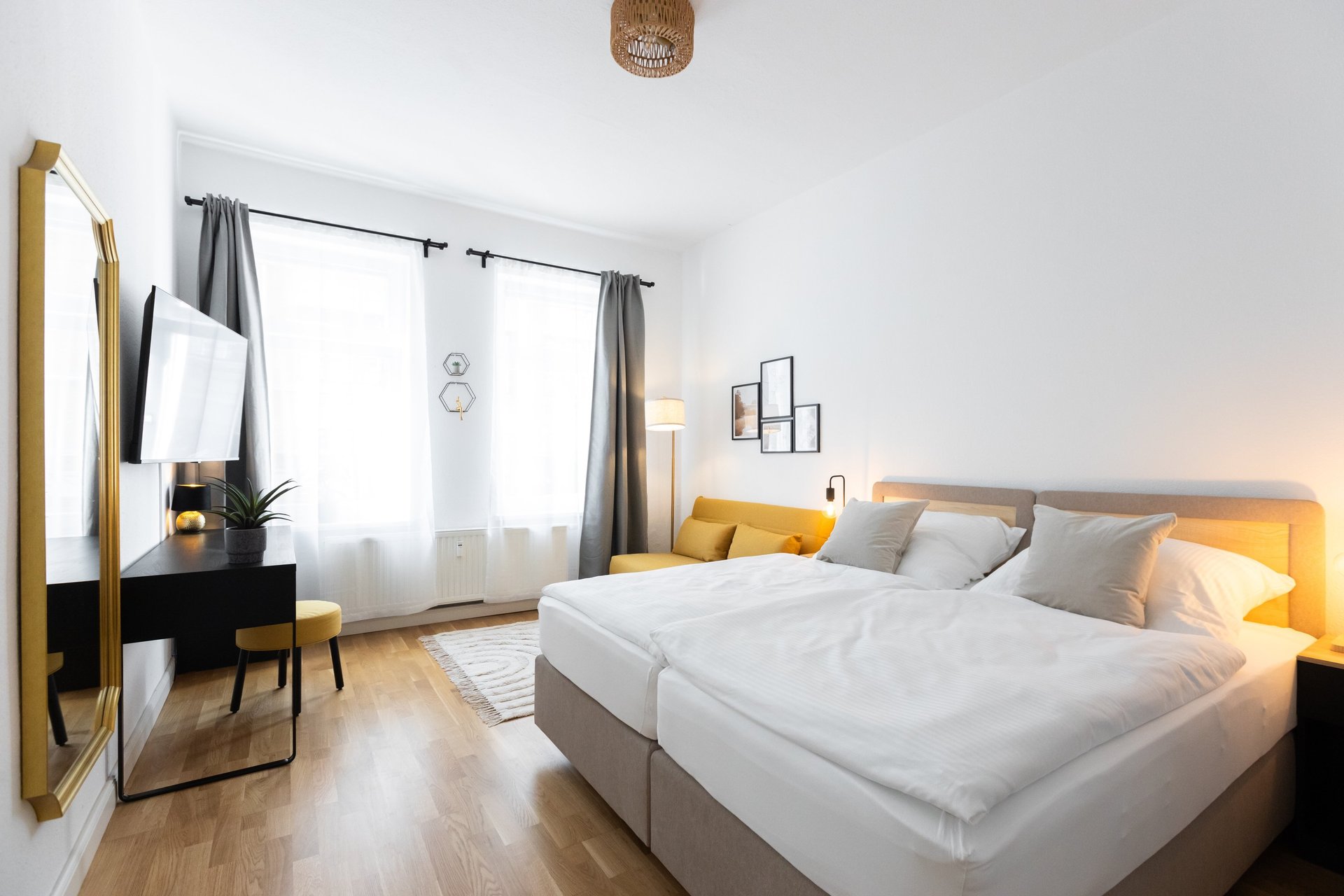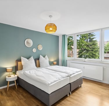 Unsere komfortablen, voll möblierten Apartments bieten alles, was du nach einem langen Arbeitstag brauchen - Qualität, Ruhe und das Gefühl zu Hause angekommen zu sein.