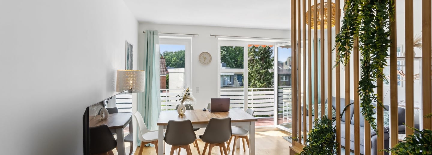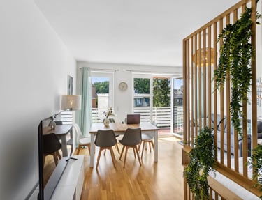 Unsere komfortablen, voll möblierten Apartments bieten alles, was du nach einem langen Arbeitstag brauchen - Qualität, Ruhe und das Gefühl zu Hause angekommen zu sein.